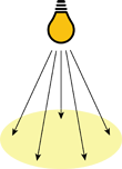 De hoek waaronder licht op een oppervlak maakt verschil. Hoe kleiner de hoek, des te groter het oppervlak waarop het licht valt en des te kleiner de verlichtingssterkte.