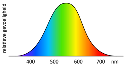 Afbeelding: gevoeligheidsfunctie V(λ).