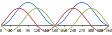 - U3 = 230V × sin(x-240)