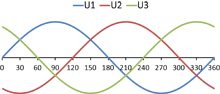 - U2 = 230V × sin(x-120)