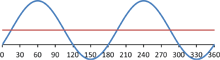 2: maximaal bij 210 graden (120 graden later).